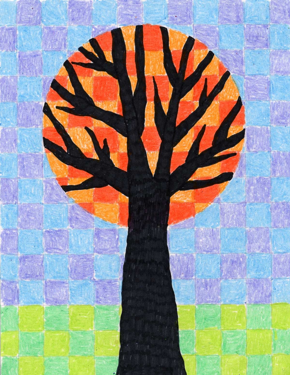 How To Draw Grid Tree Art And Grid Tree Coloring Page