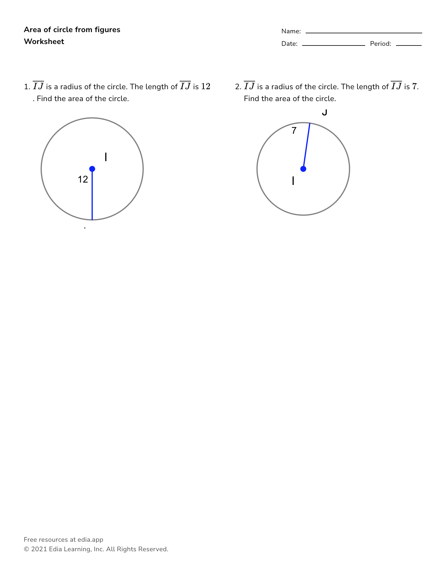 Circles Worksheet Finding Radius Diameter Area And Circumference Studocu